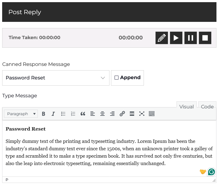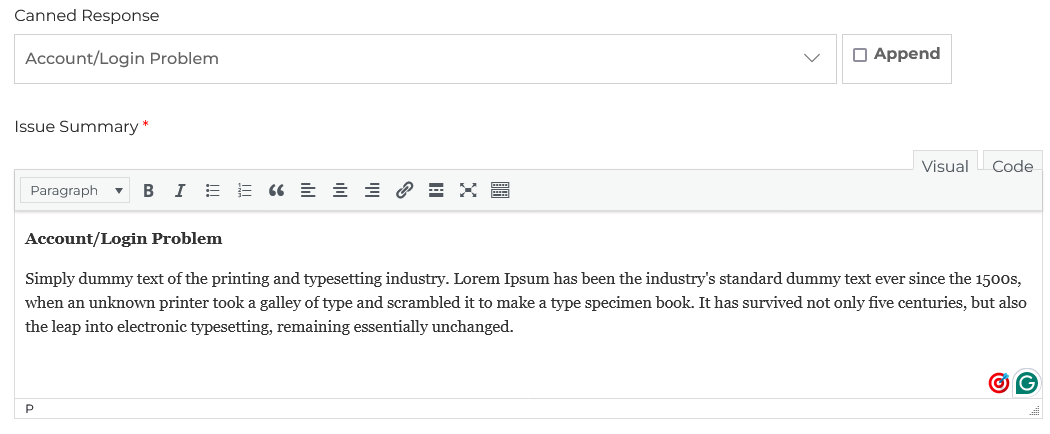 To insert pre-written replies or disclaimers. For instance, when dealing with a common issue like “Account/Login Problem”, a pre-written step-by-step solution can be appended to save time.