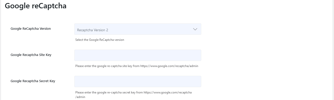This configuration allows the admin to set the Google Recaptcha version type V2 or V3.