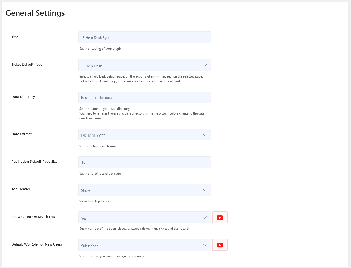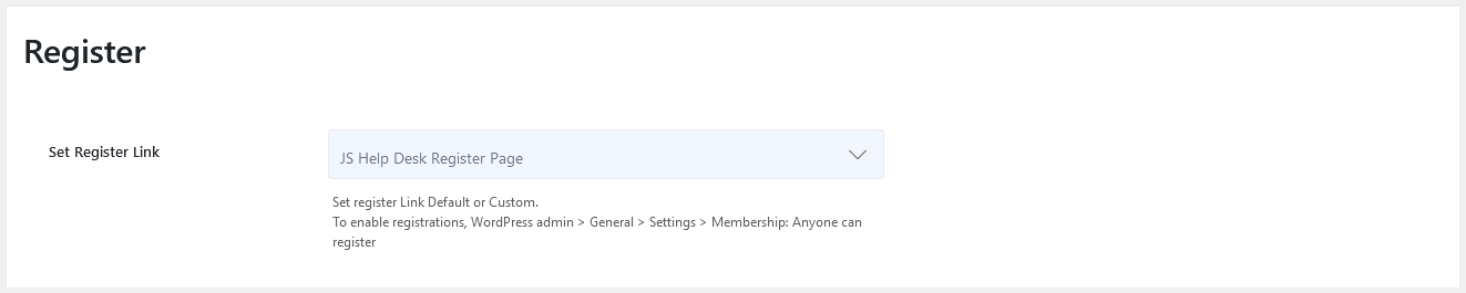 This configuration controls which WordPress role will be assigned to new users who register as users from the front end (using WP Help Desk registration).