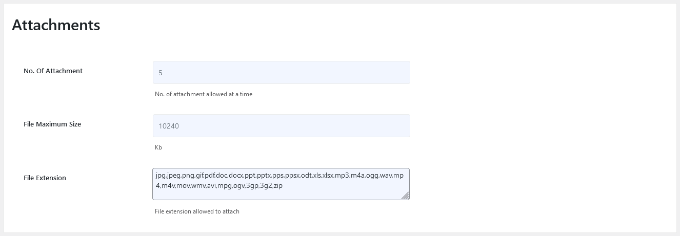 This configuration controls the No. Of attachments allowed at a time that can be attached to a ticket.
