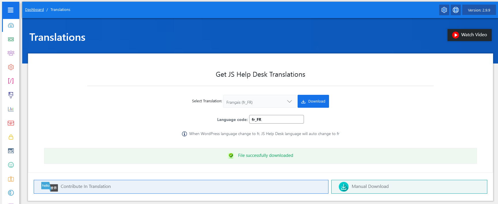 Select a language from the drop-down list and click on the download button. Your language has been successfully installed.