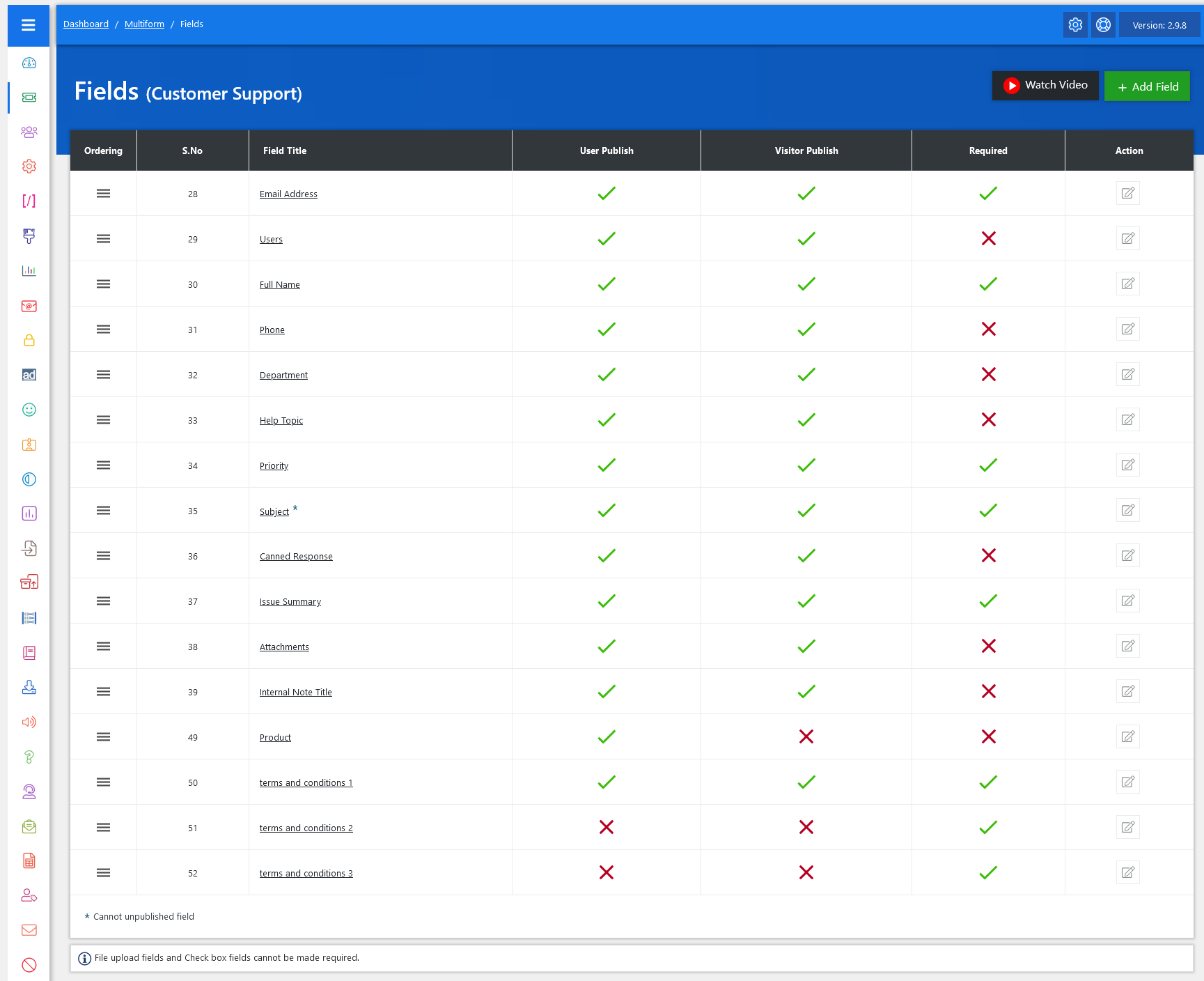 - Visitor Publish: Controls the visibility of fields in the ticket listing and ticket form page on the visitor side.