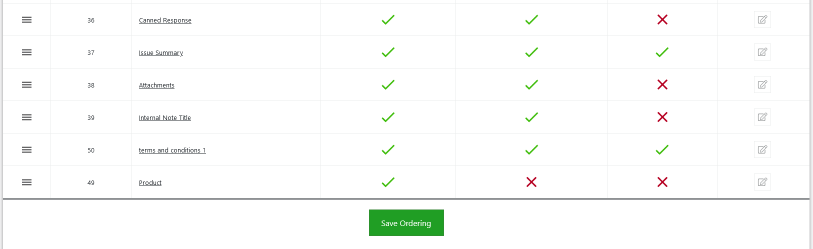 - Show On Listing: YES/NO controls the visibility of fields on the ticket listing page.
