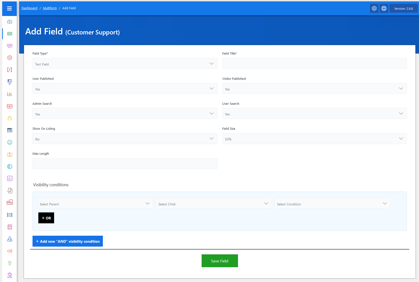 Save Field: After configuring the visibility condition and ensuring everything is set up correctly, click the Save Field button.