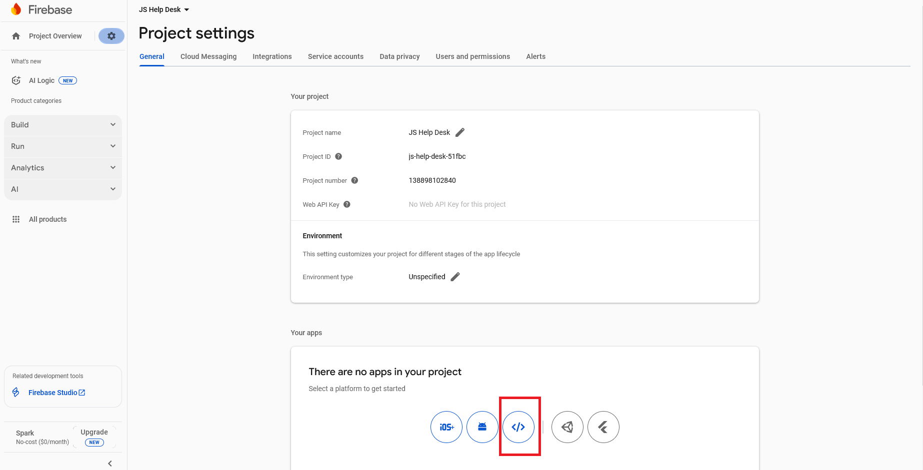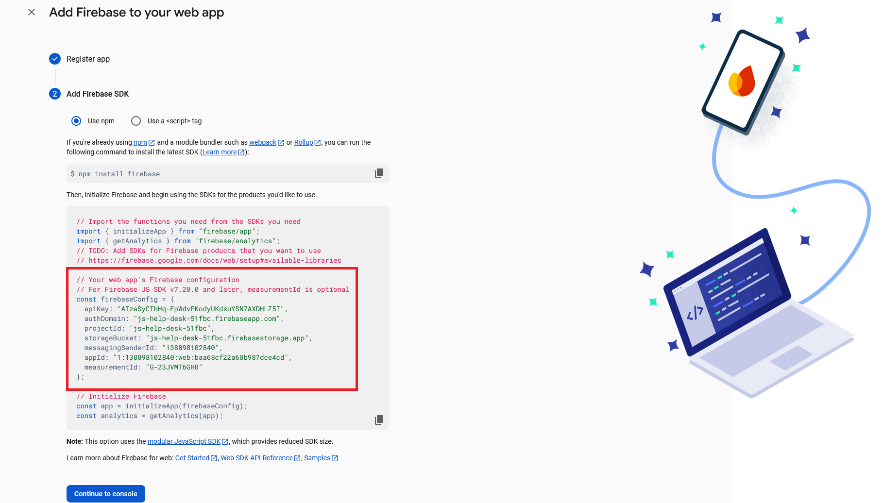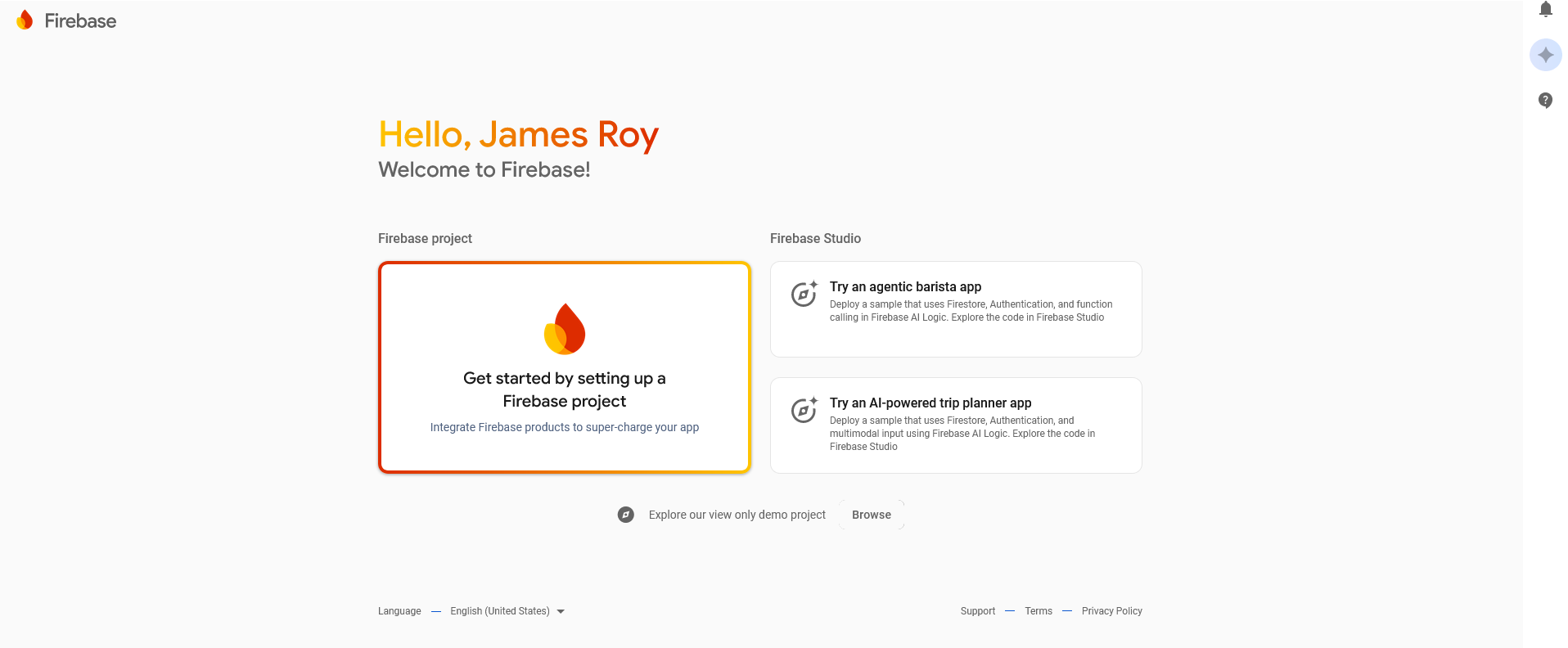 Enter your project name and accept the Firebase terms, and then click on the continue button.