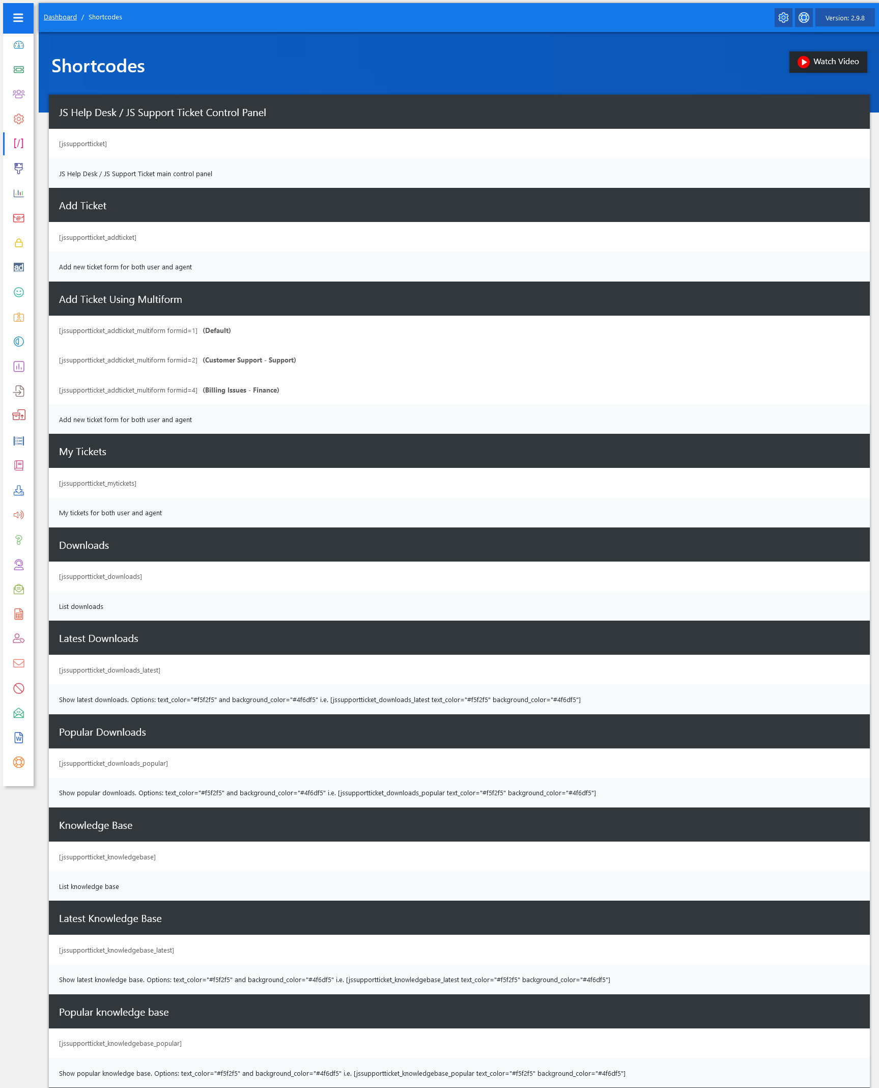 JS Help Desk provides a variety of helpful shortcodes to assist you in creating visually appealing and engaging pages that meet your specific needs. These shortcodes are intended to simplify the task of adding dynamic content and functionality to your ticket system, enabling you to display ticket listings, ticket forms, and more without requiring coding knowledge. Let’s delve into how to effectively utilize shortcodes to personalize and enhance your JS Help Desk experience.
