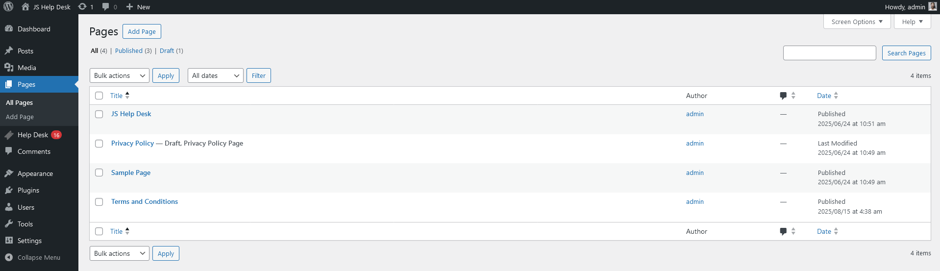 Now, the Help Desk Control Panel page will appear in your website’s menu, providing quick and easy access for users. This method streamlines the process of using shortcodes and pages, ensuring a user-friendly experience.