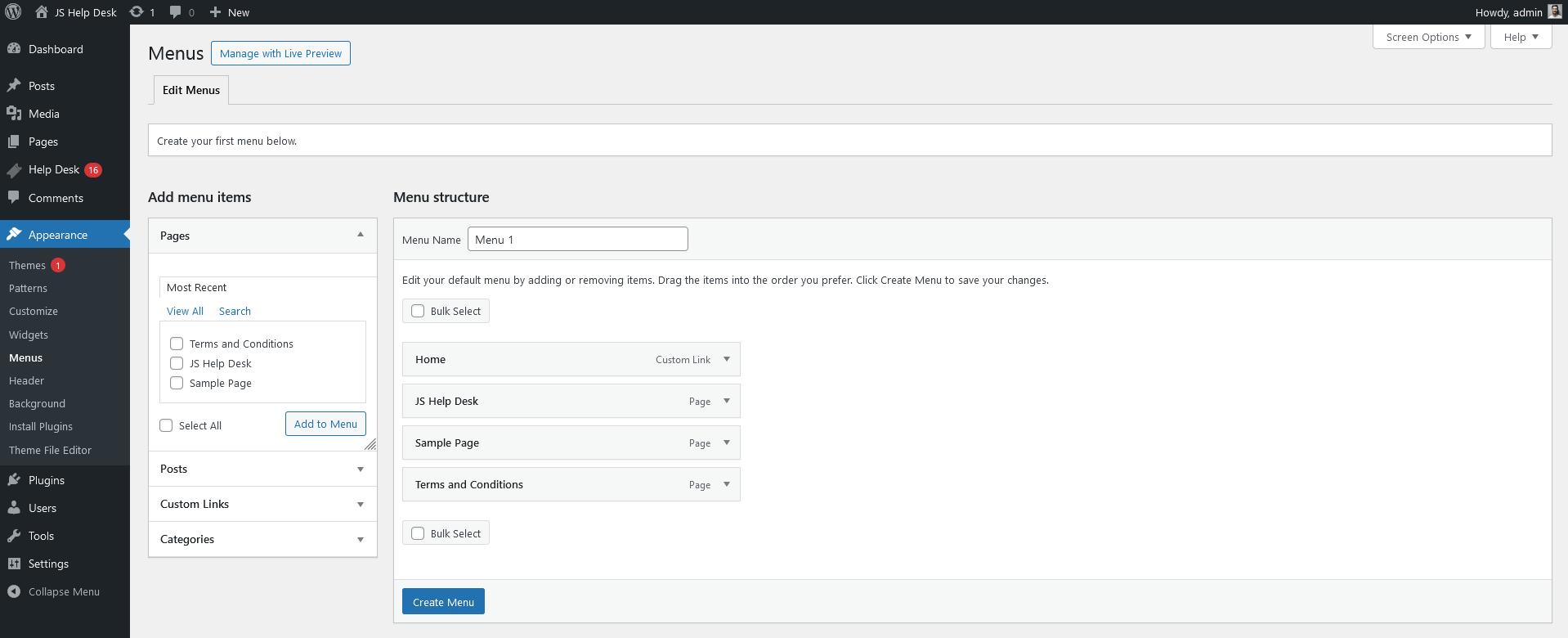 To make the Help Desk Control Panel easily accessible from your website’s menu, follow these steps:
