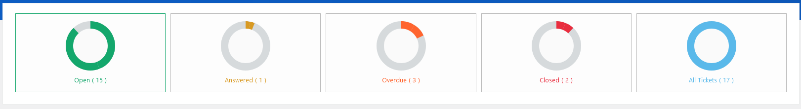 This represents the total number of tickets currently in the system. When the admin clicks on the all tickets button, tickets with status (open, answered, overdue, and closed) are displayed in this list.