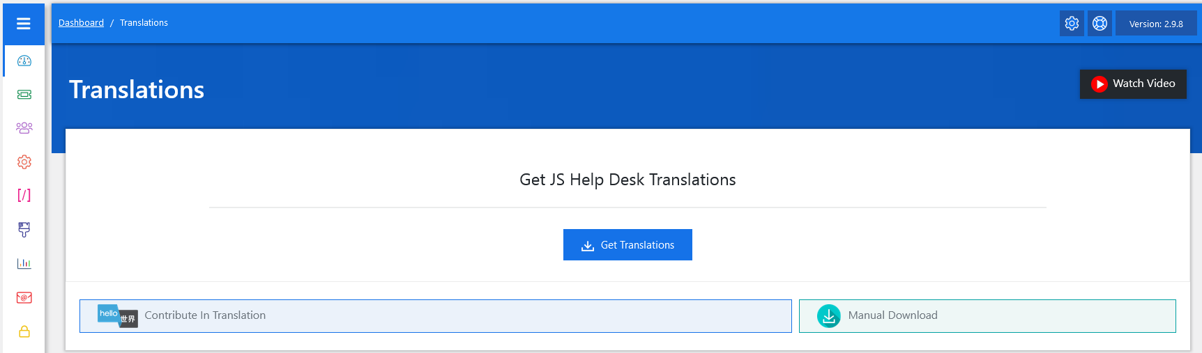From your admin dashboard, navigate to Admin Dashboard > Dashboard Menu > Translations. This will take you to the translation page. The Translation feature in JS Help Desk allows you to run your help desk in multiple languages. This is especially important if your support system is used by a global audience. Instead of only showing text in English, you can translate all labels, buttons, and system messages into any language (e.g., Arabic, Spanish, French, etc.)