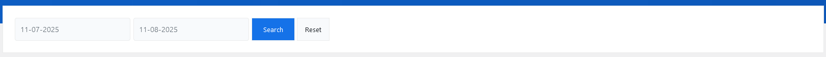 You can select your desired date range using the date picker at the top, then click the Search button to view the ticket statistics for that period. The Reset option allows you to quickly revert the filters to the default and start a fresh search.