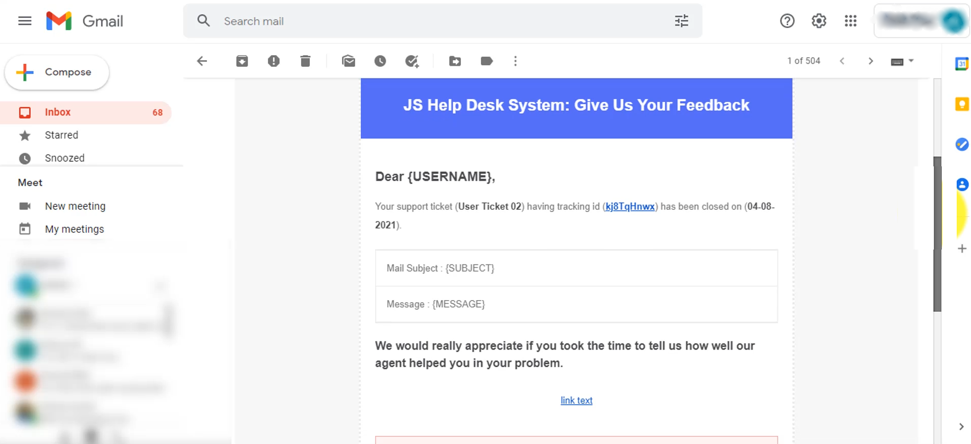 User Feedback in JS Help Desk is a built-in feature that allows customers to share their experience after receiving a support email from your team. It provides a simple and effective way for users to express their satisfaction or dissatisfaction with how their ticket was handled. This helps your organization measure service quality, monitor team performance, and make improvements based on real user insights.